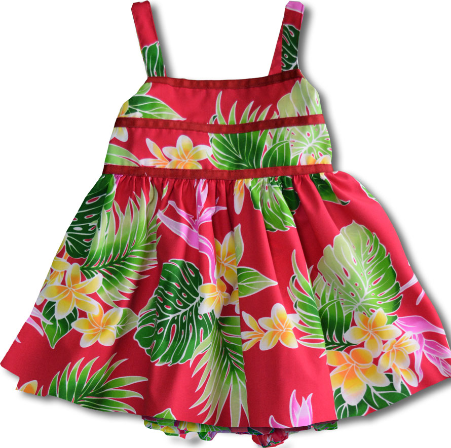 Yellow Plumeria Girl's Baby, Infant Hawaiian 2PC Ribbon style (Jumper) Dress Set with matching pant is Available in Pink, Blue, Red and Teal.