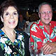 Suzanne and JR Cline Suzanne is wearing wearing a Star Orchid Fuschia Short Tank Dress and her husband is wearing the same print in the Men's Hawaiian Aloha shirt. Sarasota, Florida.